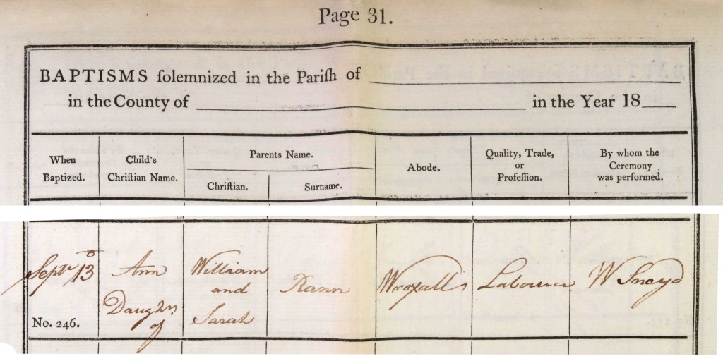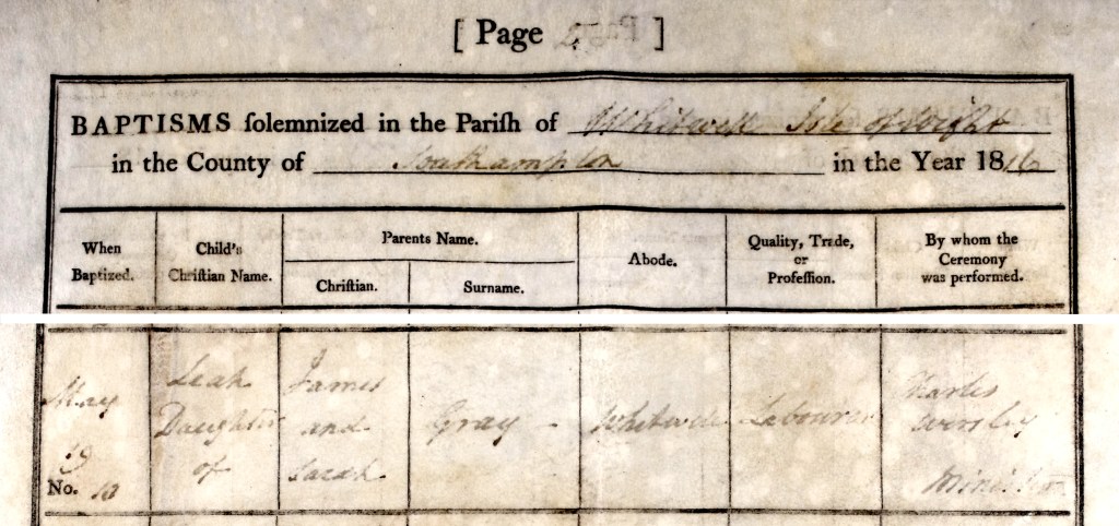 James and Sarah Gray’s second child was a daughter Leah, whose baptism was registered in Whitwell Church on 19 May, 1816.