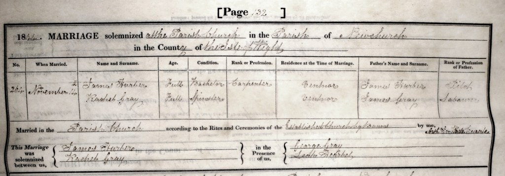 Rachel Gray’s new husband was the son of Jane Lane and James Harber a ‘mariner’ who had been employed in the Royal Navy for about 2 years. He was born at Brading.