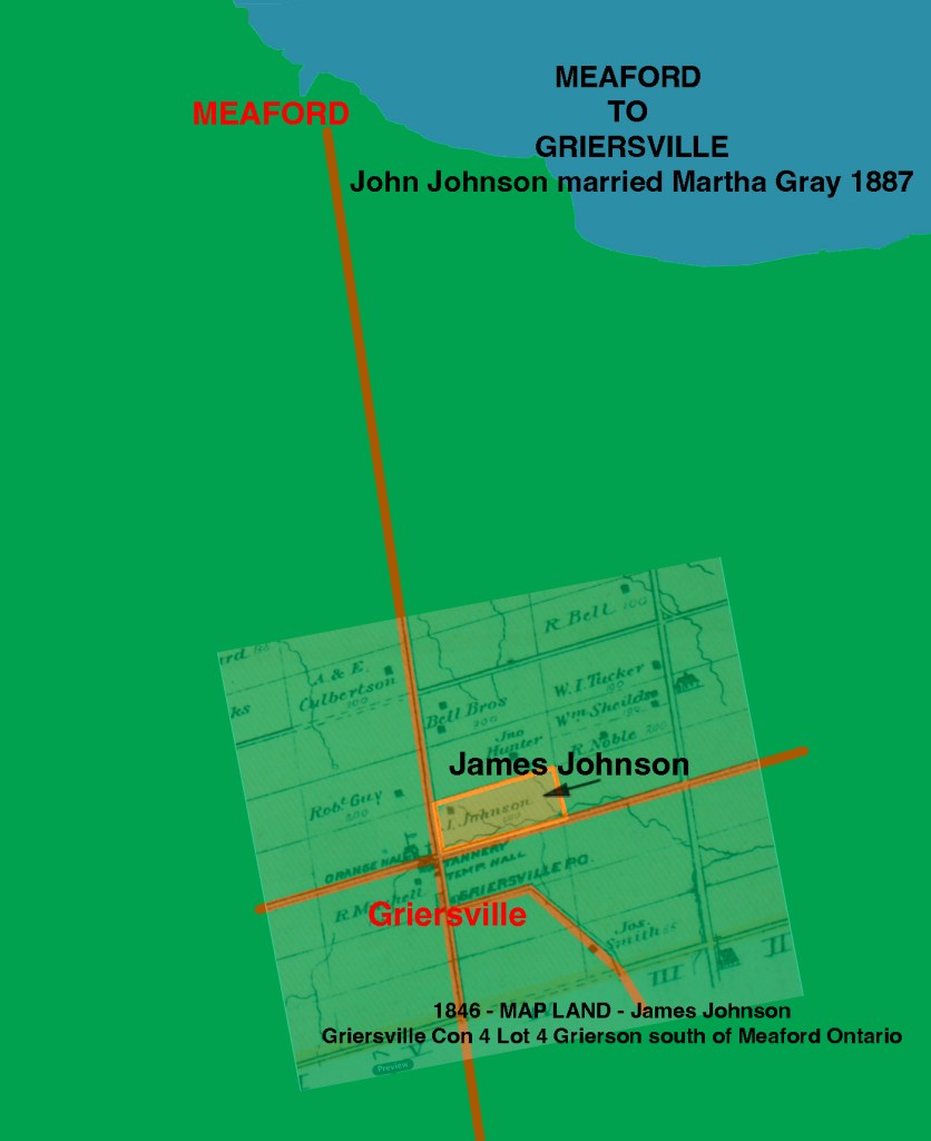 John was the son of James Johnson and Catherine Ann Johnson nee Tayor, immigrants from Ireland. John John originally took up land at from Griersville just south of Meaford.