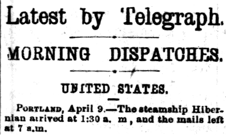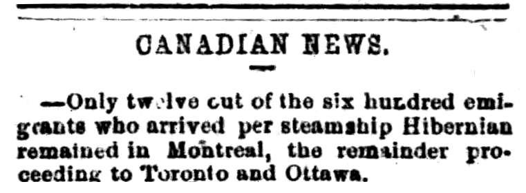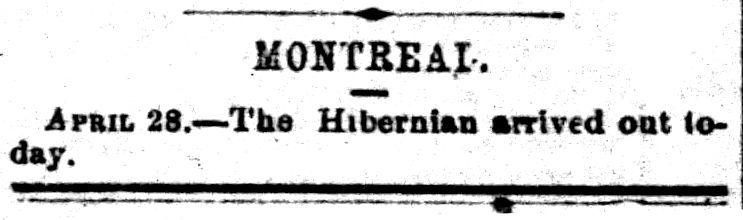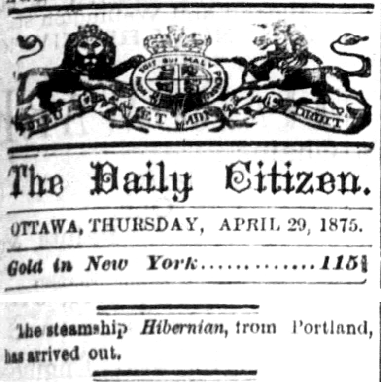 The voyage of the Hibernian was documented in the newspapers as it arrived in different ports.