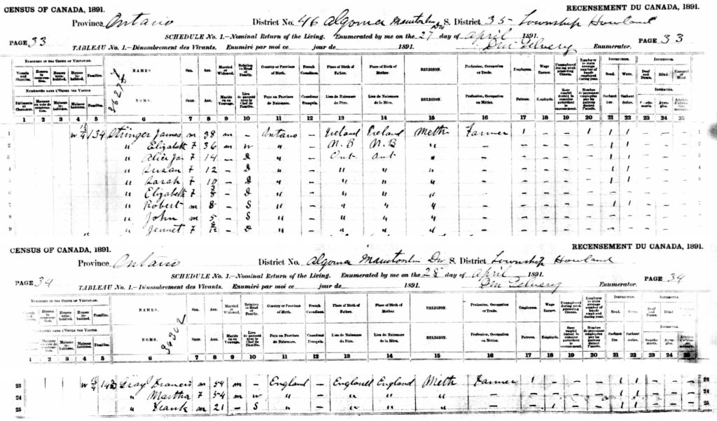 The 1891 census showed Francis and Martha Gray both now aged 54 years living in the township district of Howland Township which is now been absorbed into Little Cutter still on Manitoulin Island with James occupation listed as farmer.