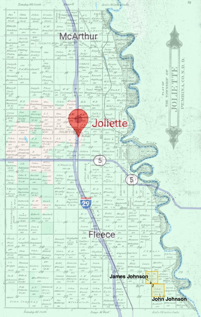 James Johnson and his son John later took up two pieces of farmland just south of Joliette.