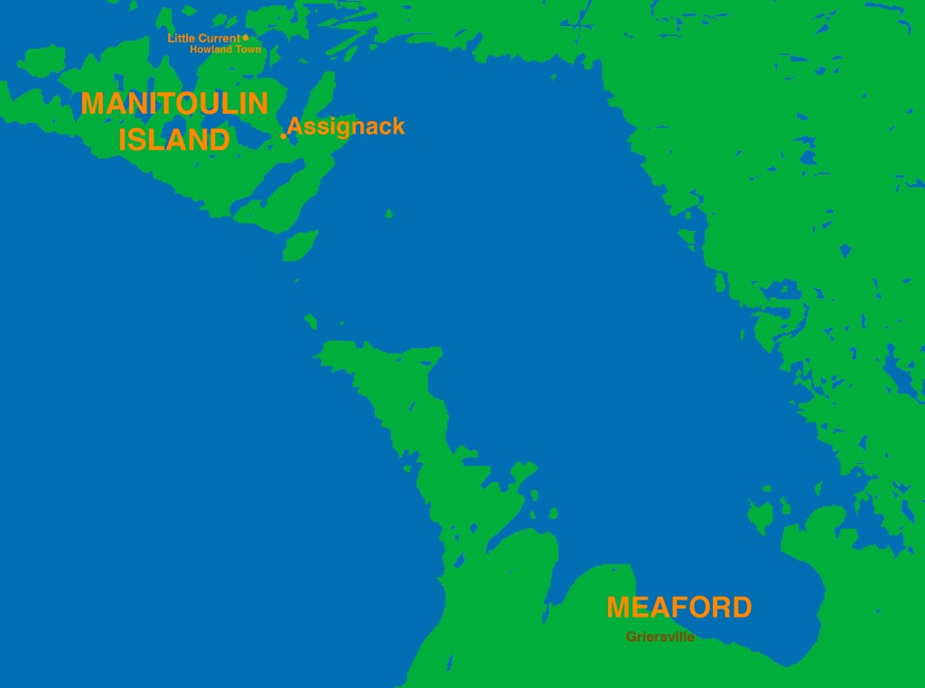 This clearly places the family on Manitoulin Island, the largest freshwater island in the world, with the family moving from a sea island to lake island life. The island has a large indigenous population and history.