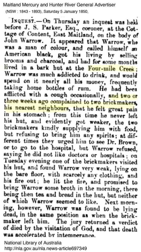 - Trove Newsappers – Newcastle Chronicle and Hunter River District News (NSW : 1859 – 1866), MONDAY, DECEMBER 12. Wednesday 14 December 1864 POLICE INTELLIGENCE Monday, December 12